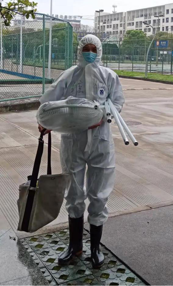 全副武装,进入学生公寓进行维修,你的样子好帅!