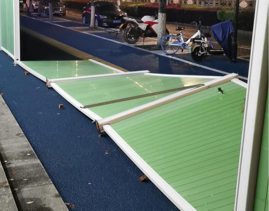 晚上11点多,因大风导致围挡倒塌,维修人员临时加固围挡