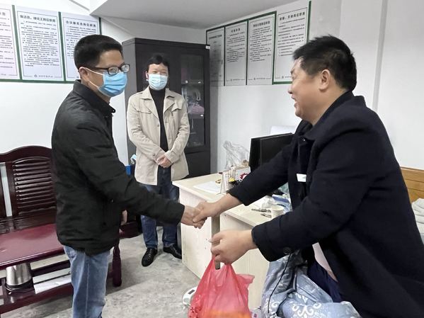 3月25日下午,校党委委员、副校长余建军在后勤保卫处处长郑立平的陪同下,看望慰问病倒在校园疫情防控一线的浙江师大印象物业服务有限公司经理霍正佩,并送上了水果、肉类等慰问品。